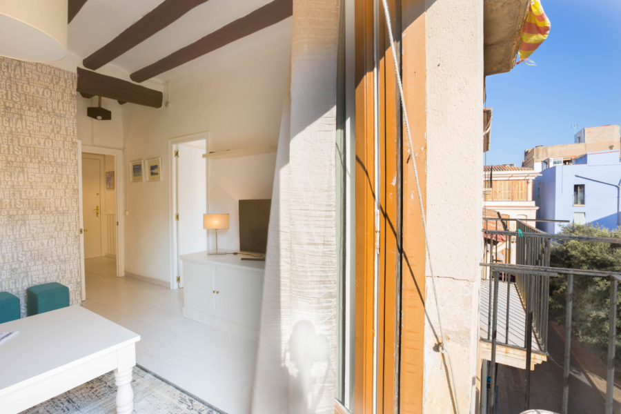 Pis reformat i molt lluminós, perquè encara que està en la Part Alta, és cantoner, Sant Pere i Estubes amb Cuirateries, amb vistes a la plaça.